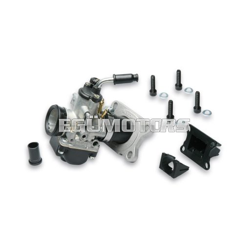 The greatest innovation of these new Malossi carburettor kits is the modular intake manifold. It allows to rotate the manifold into the flange according to the specific requirements of ones own vehicle, in order to identify which is the best angle for fitting the carburettor.