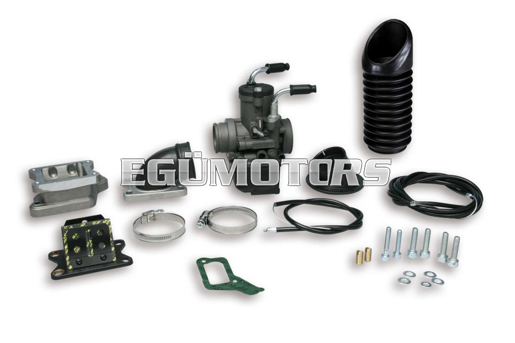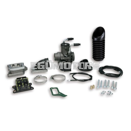 The greatest innovation of these new Malossi carburettor kits is the modular intake manifold. It allows to rotate the manifold into the flange according to the specific requirements of ones own vehicle, in order to identify which is the best angle for fitting the carburettor.