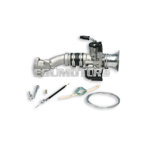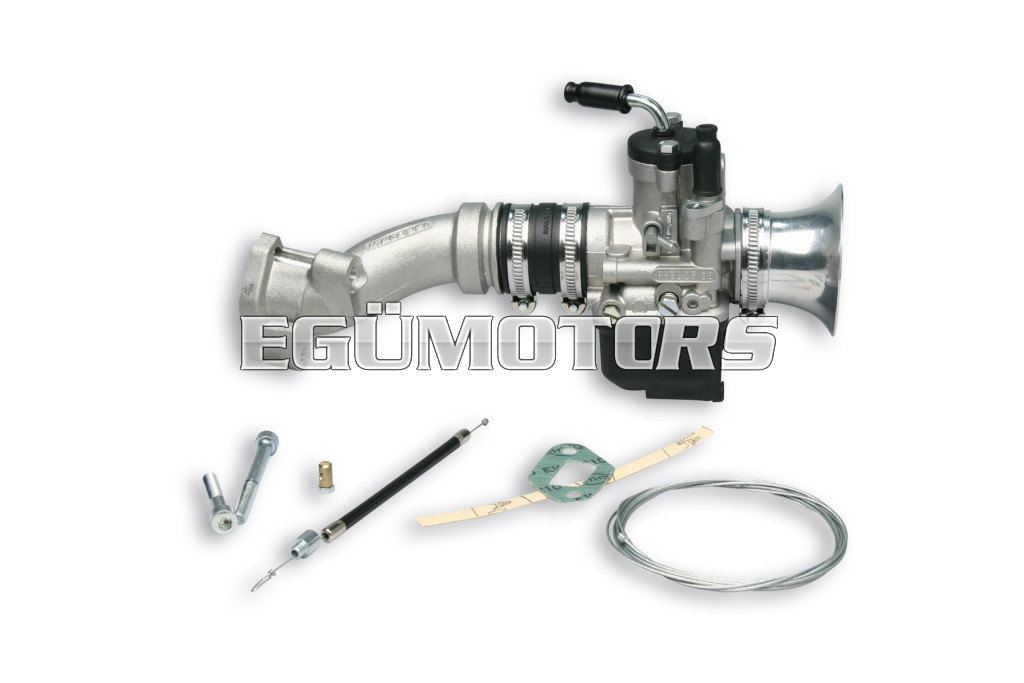 Carburettor with elastic connection (B) and adjusting screws on the left (S).
