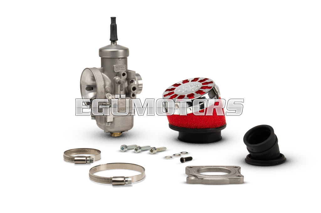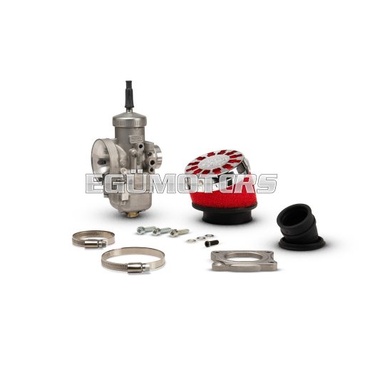 The greatest innovation of these new Malossi carburettor kits is the modular intake manifold. It allows to rotate the manifold into the flange according to the specific requirements of ones own vehicle, in order to identify which is the best angle for fitting the carburettor.