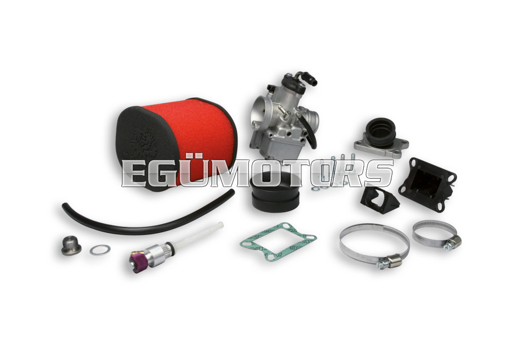 The greatest innovation of these new Malossi carburettor kits is the modular intake manifold. It allows to rotate the manifold into the flange according to the specific requirements of ones own vehicle, in order to identify which is the best angle for fitting the carburettor.
