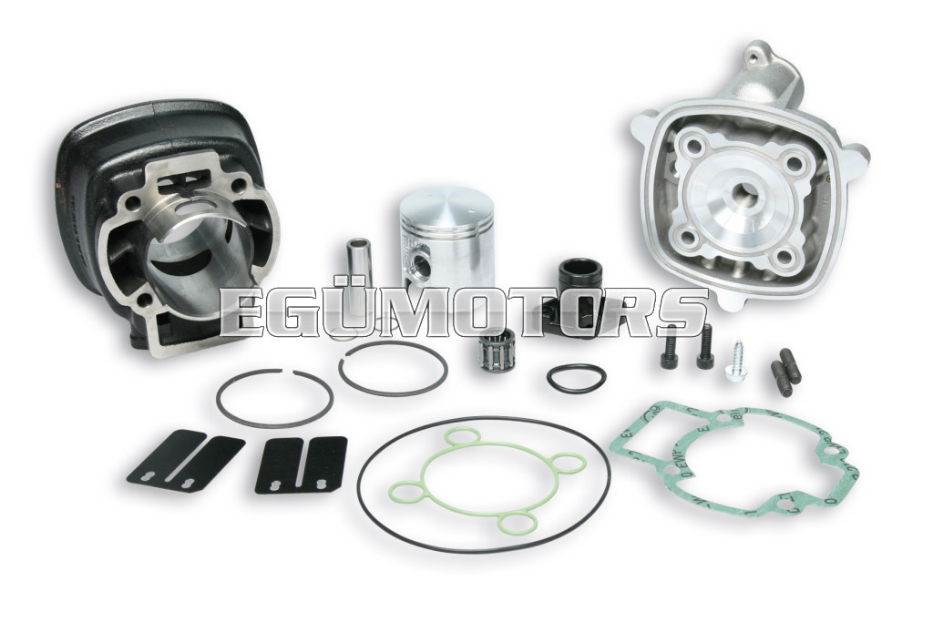 Malossi gyártmányú robogó tuning alkatrész. 70 ccm-es, öntöttvas, vízhűtéses, komplett szett.