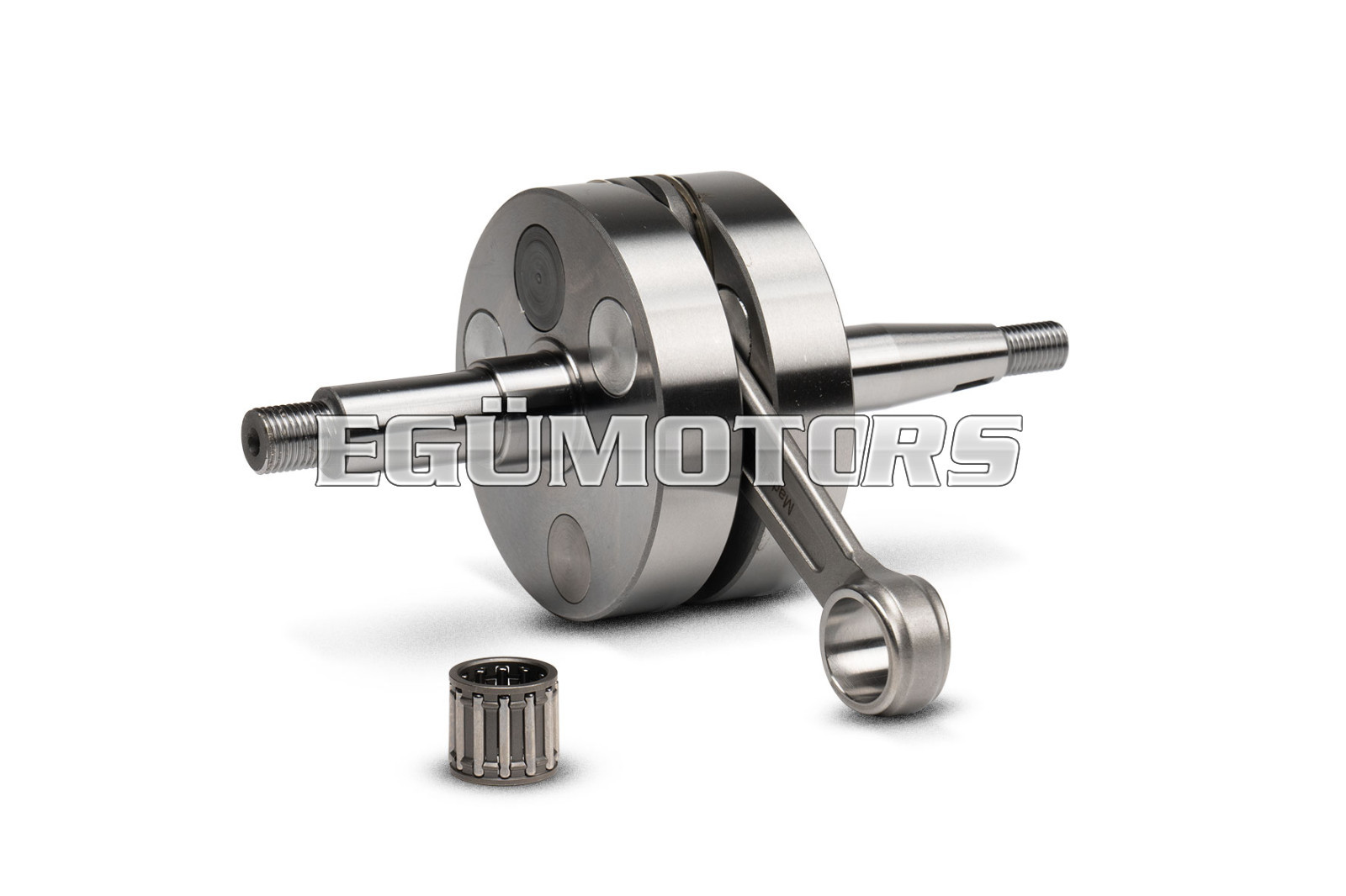 The Malossi crankshaft for the 100 cc cylinder is primarily composed of two half-shafts forged from special steel, machined on high-precision CNC tools, and then subjected to a thermochemical treatment involving carburizing, hardening, and cryogenic cooling in nitrogen. This process gives the halfshafts exceptional hardness and strength, essential for supporting the high power output generated by the 100 cc cylinder.