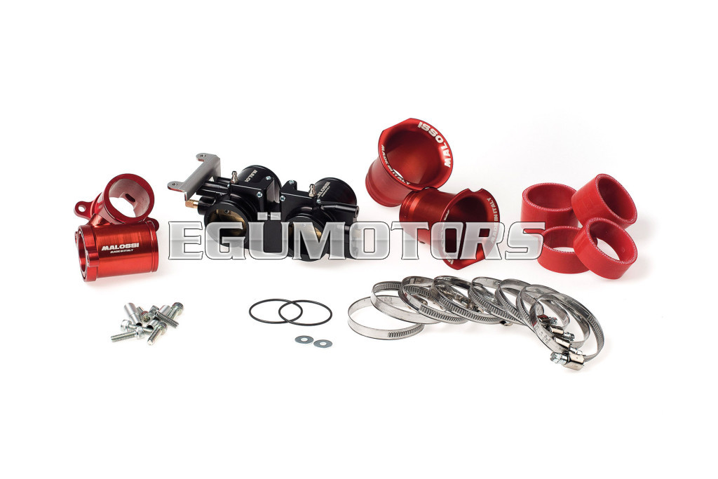 Made of black anodized 7975-T6 aluminium, the MHR throttle body has been designed specifically to achieve maximum efficiency in combination with the 560 cc Malossi twin cylinder kit and with the Double PowerCam, providing the right intake to the engine in this configuration.