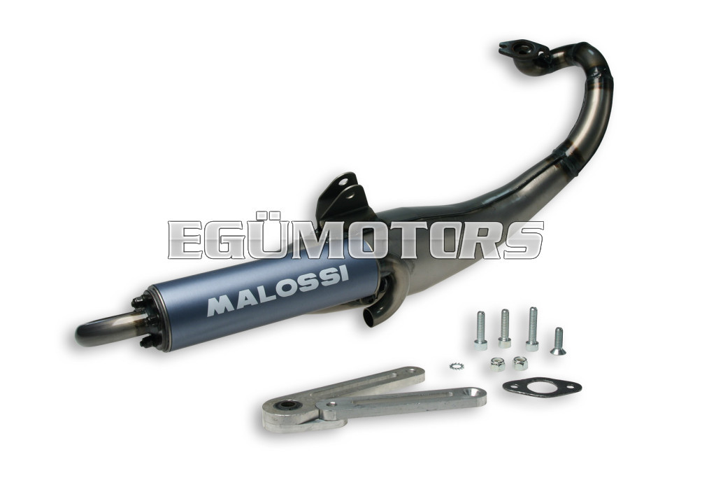 EXHAUST in special sheet steel (1.5 mm thickness) manufactured through the press working process. The exhaust features silencing baffles, aluminum alloy mounting brackets with vibration isolators. Clear-coat finish.