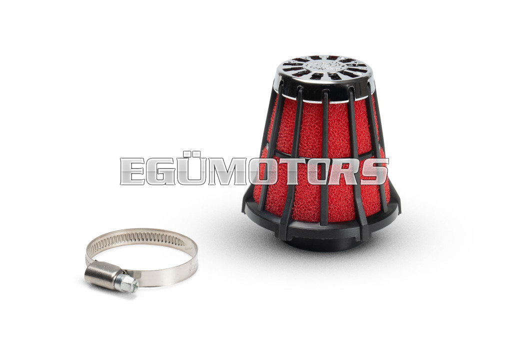 E5 air filter with filtering component made of red expanded polyurethane for 50 cc scooters.