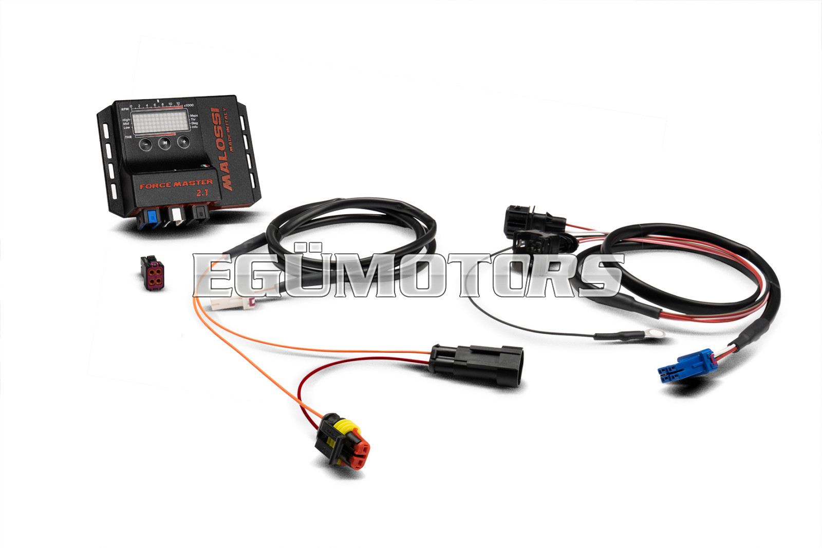 Full carburetion control is achieved by combining the O2 controller with the Force Master control unit. The synergy of these two devices has no limits, the entire quoted plane is managed, controlled and optimised for any processing step proposed by Malossi.
