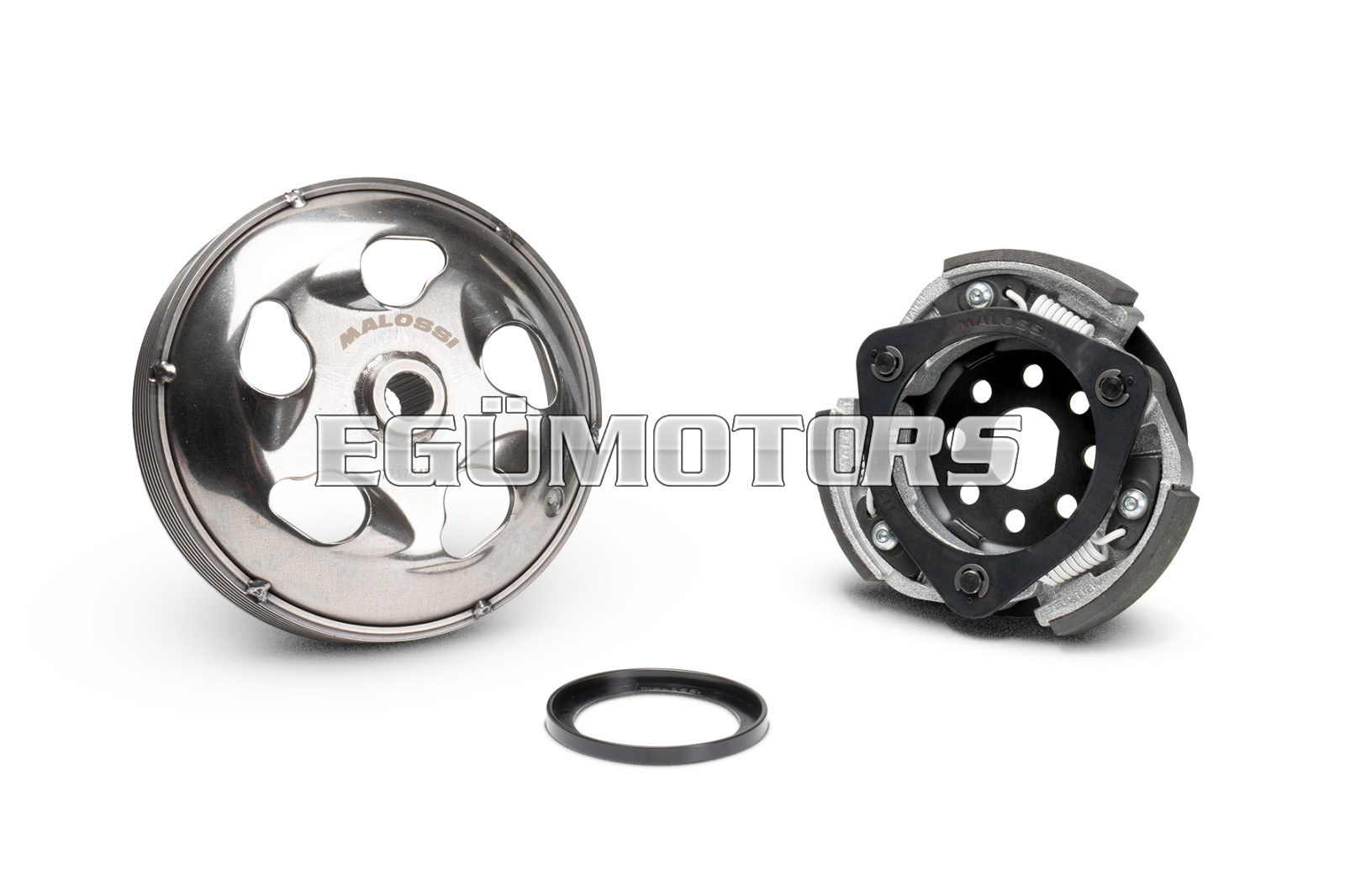 The simplicity of the system quickly allows spring adjustment with regards to centrifugal force and the possibility of interchanging a spring with different K values. These values are listed in the Malossi catalogue.