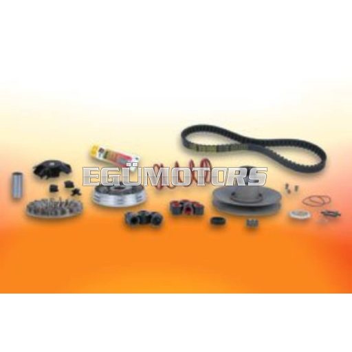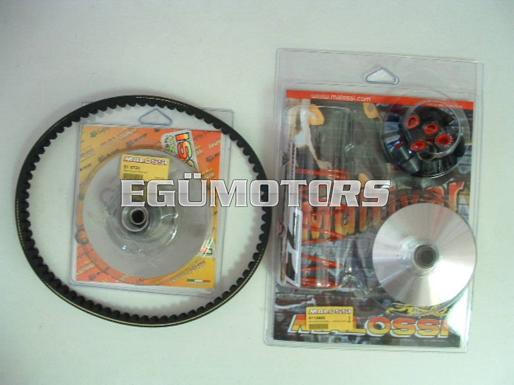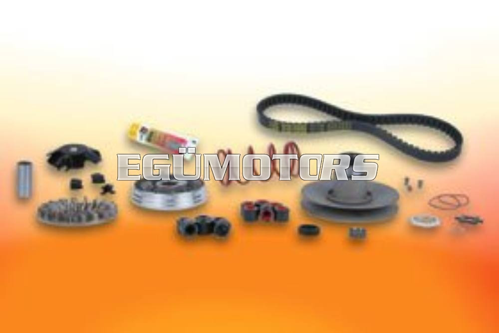 Malossi MHR Overrange variátor szett profiknak, rövid Minarelli blokkos robogókhoz. Nagy teljesítményű robogókhoz fejlesztette a Malossi, nagyon jó gyorsulás és végsebesség érhető el vele. A 19x15.5-es görgőt használó optimalizált kúpszögű MHR variátor, a kevláros ékszíj, a többféle lineáris ékpályájú szíjtárcsa mind-mind az abszolút finomhangolást és a csúcsteljesítményt szolgálják.