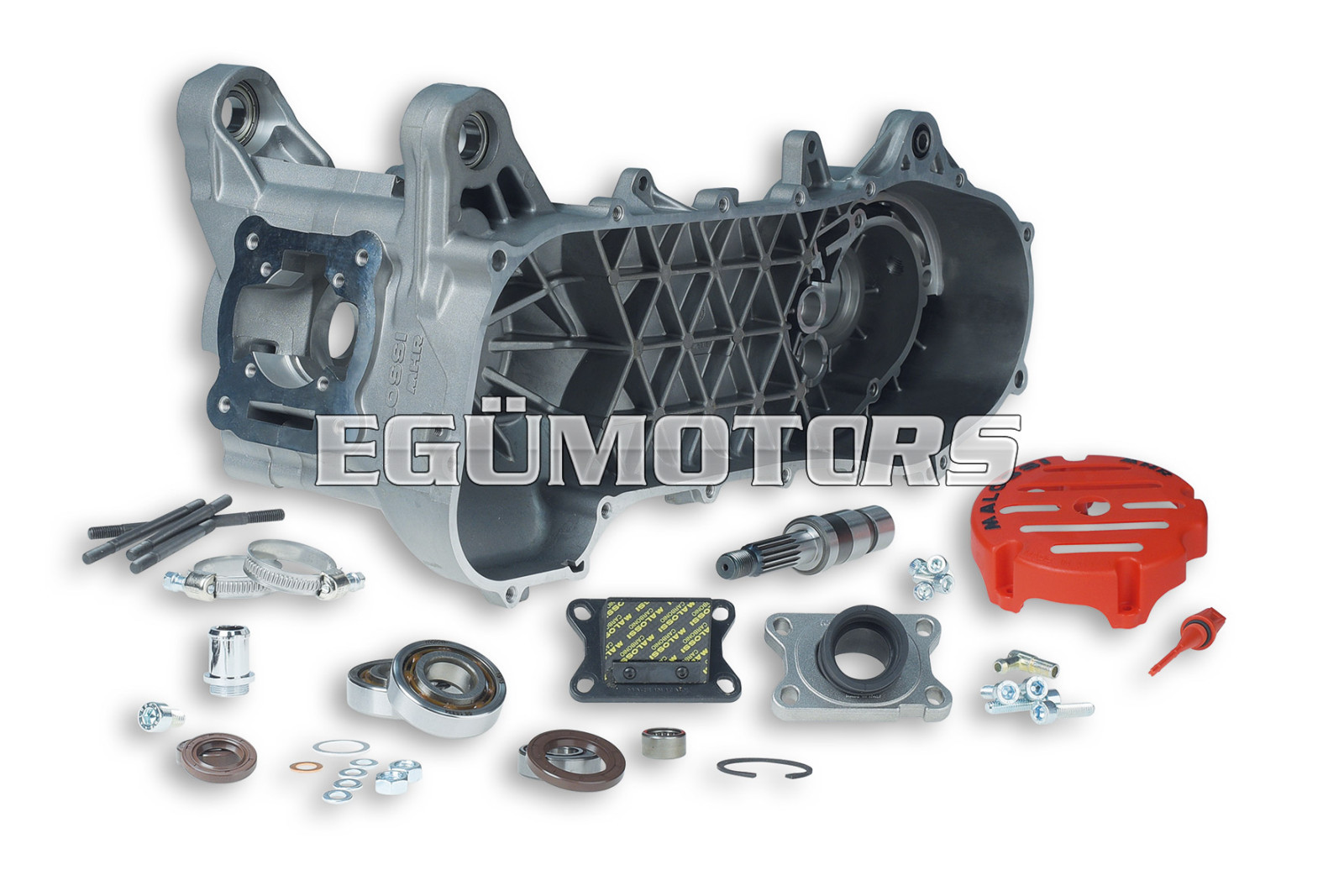- Crankcase pair, die-cast material in aluminum silicon alloy with high mechanical resistance.