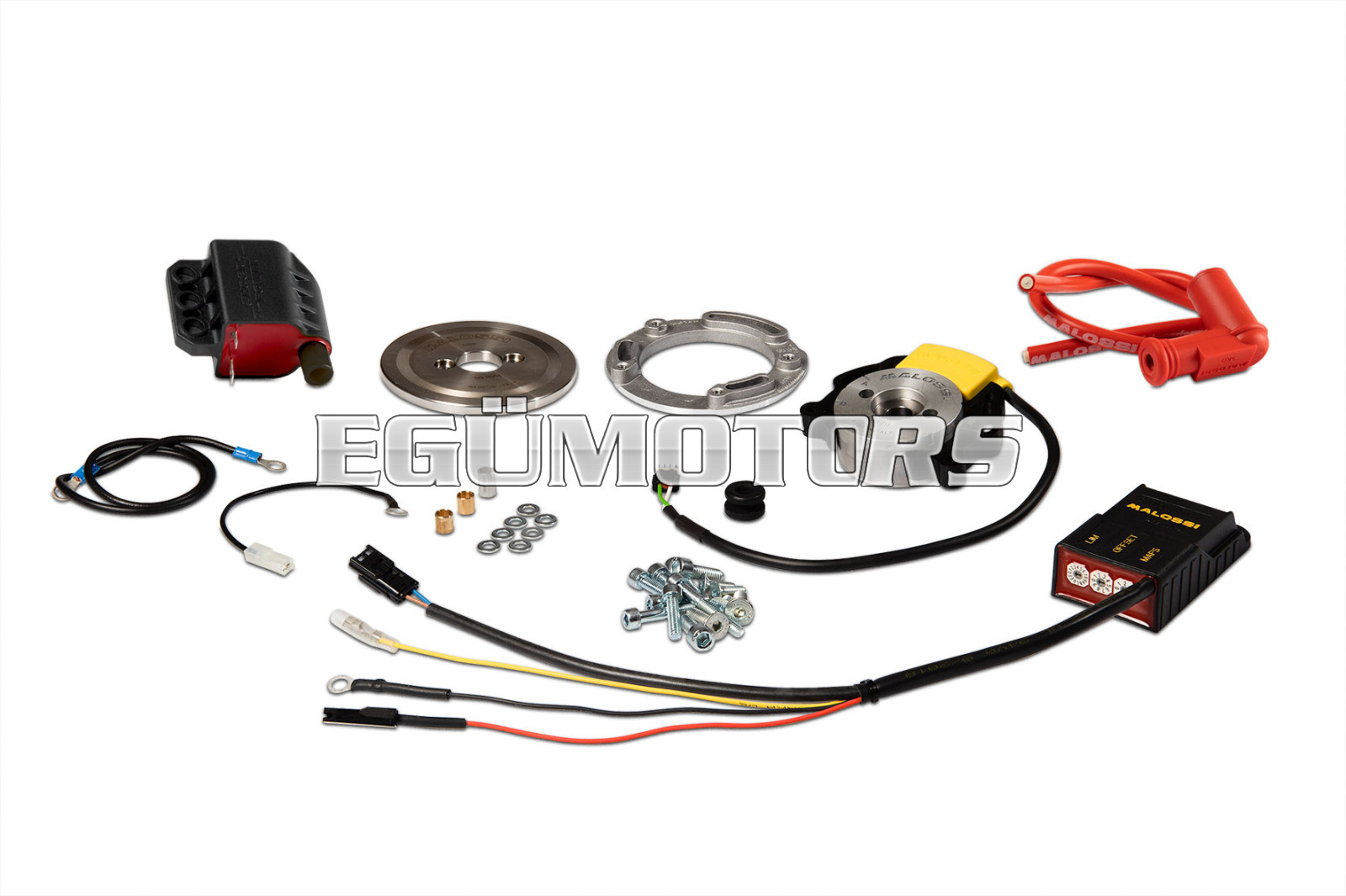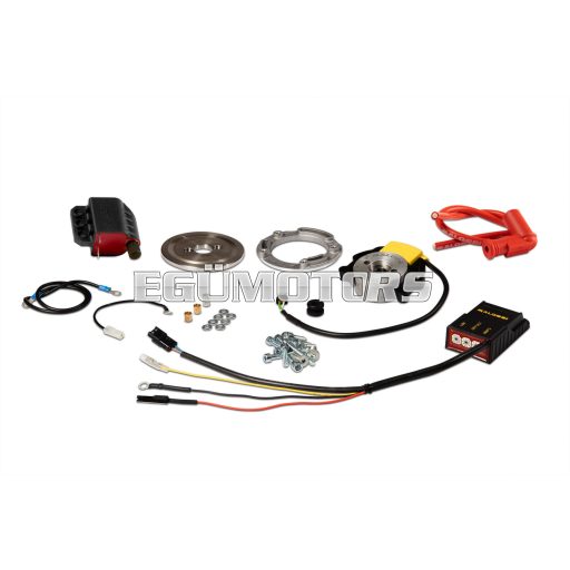 The inner rotor ignition systems designed by Malossi are based on the state-of-the-art technology applied to racing. Such a new system resulted from the need to overcome the technical limitations imposed by conventional flywheel ignition, which cannot ensure consistent performance over 10,000 rpm and causes severe setting-up problems for racing vehicles.