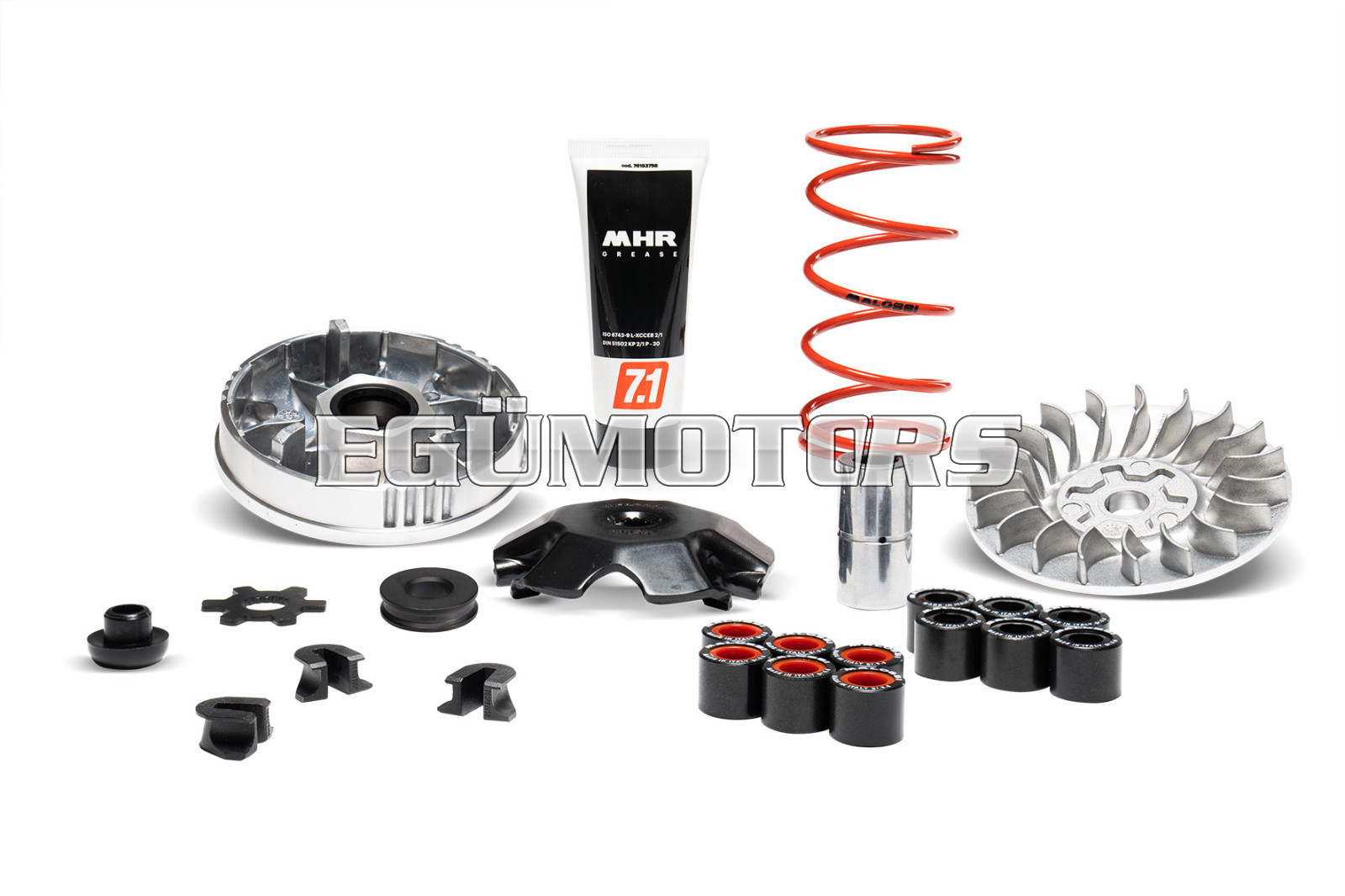 The centrepiece of the new kit Malossi variator transmission remains the Multivar, in constant evolution, which isaccompanied by two sets of rollers to adjust the operation of the transmission according to your needs. With the wide range of variator rollers available in our catalogue, the set-ups are virtually endless.