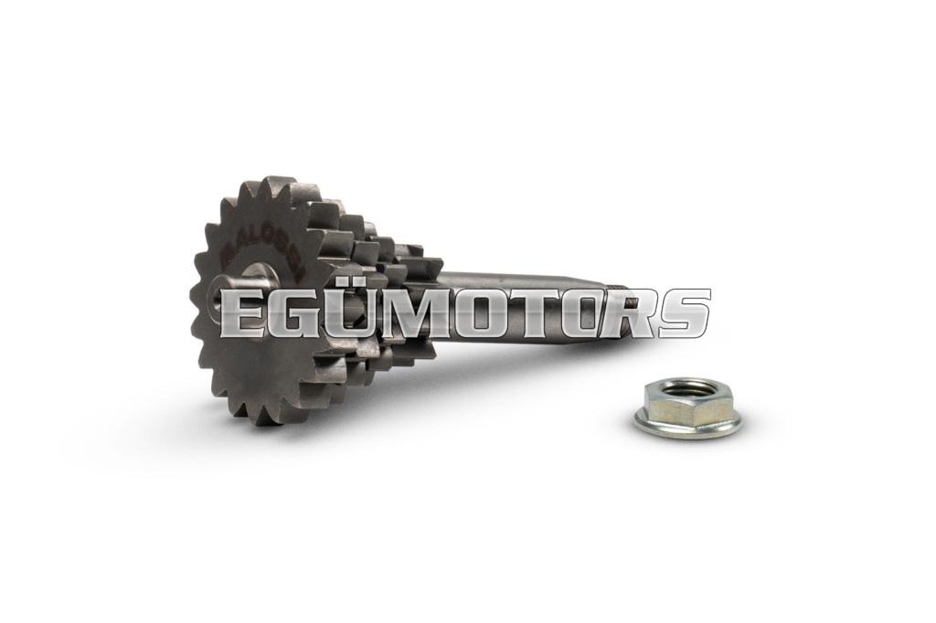 The Malossi multiple speed gear is perfectly interchangeable with the original and does not require changes to the housing. Moreover, thanks to an obsessive search for the correct dimensioning of the tooth, it is able to operate perfectly in combination with all the other gears. The choice of this precise module, in fact, has made it possible to keep the wheelbase unchanged. This technical solution of great value ensures high reliability and a significant reduction of noise.