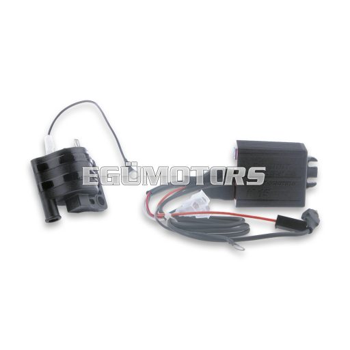 Each electronic coil model was expressly studied for the scooter it will be fitted on, and this is the reason why after endless tests on the bench, on rollers and on the racing track an optimal start up map (fixed or variable) has been prepared in order to obtain the best performances of the vehicle. The Malossi electronic coils were designed to allow also a very easy assembling, since they are interchangeable with the original boxes. They are compact and ergonomic, so they can be connected perfectly to the original connectors.