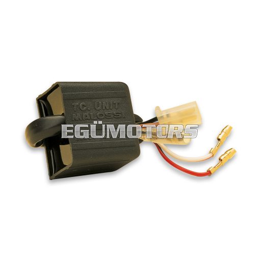 Each electronic coil model was expressly studied for the scooter it will be fitted on, and this is the reason why after endless tests on the bench, on rollers and on the racing track an optimal start up map (fixed or variable) has been prepared in order to obtain the best performances of the vehicle. The Malossi electronic coils were designed to allow also a very easy assembling, since they are interchangeable with the original boxes. They are compact and ergonomic, so they can be connected perfectly to the original connectors.