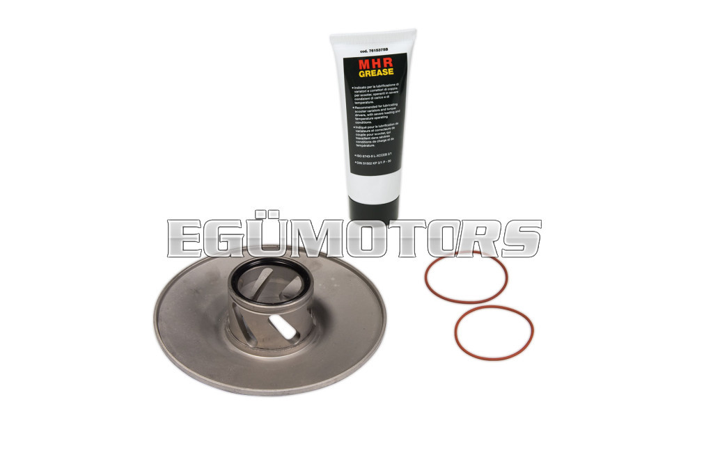This component called Torque Driver for its specific function of determining the exact shifting moment, was calculated to give the vehicle the maximum possible acceleration in connection with the specific power of any single engine. The spiral's peculiar shape was studied to fix the RPMs on the point of maximum power. It was expressly created to complete the development of boosted motors withour cylinders, variators and the special Malossi K Belts, allowing to fully exploit your vehicle's notable torque and power.