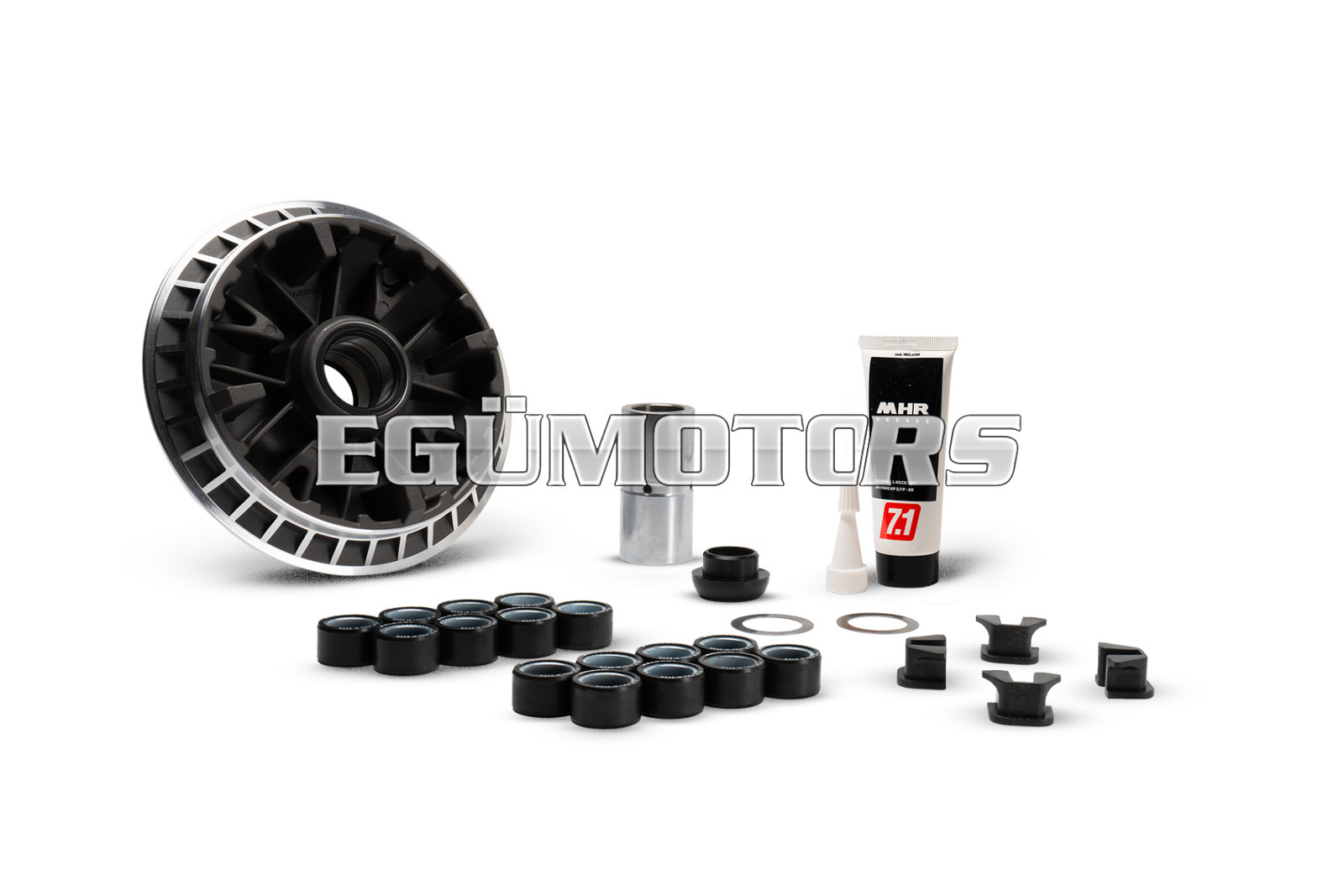 - Supplied with two different roller sets and two shims in order to change the number of revolutions of the gear curve of your vehicle perfectly adjusting its speed and acceleration