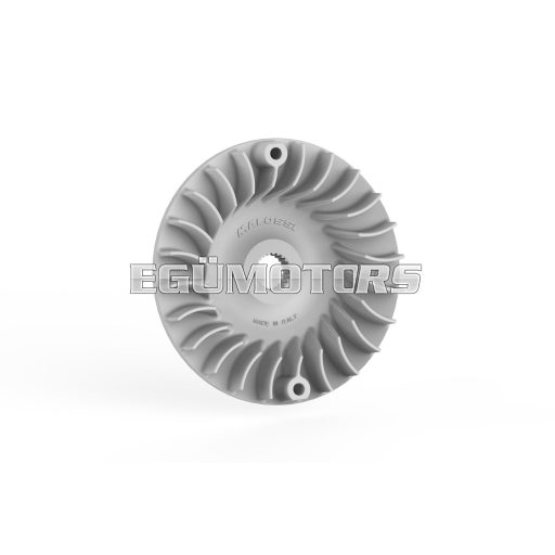It’s a fixed half-pulley with a diamond finish of the belt-side pulley surface and a redesigned working angle to further increase the gearing range. This component completes the Multivar and renders it unparalleled. Specially designed for the line of variable-speed drives for scooters, it further improves the performance of the drive belt. It is not just a simple accessory, but a very important part for guaranteeing the long life of all the transmission components. The temperatures produced inside the crankcases where variators work with V-belts are prohibitive at critical moments and certain parts, such as transmission belts and variator rollers, sometimes suffer irreparable damage. There are cases in which the rollers could even reach the melting point. Apart from its other advantages, Ventilvar has a greater cooling capacity than the original half-pulley; that’s a result that makes it indispensable for safe and sporty driving.