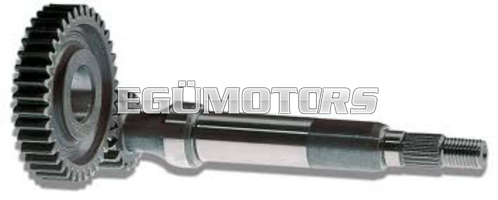 A gyári közlőkeréktengelyre gépműhelyben rá kell préselni az új közlőkereket. Mivel ez a fogaskerék páros a gyárival ellentétben egyenes fogazású, így kevésbé teszi ki a primer csapágyat oldalirányú terhelésnek, azonban a fogzaj jelentősebb.