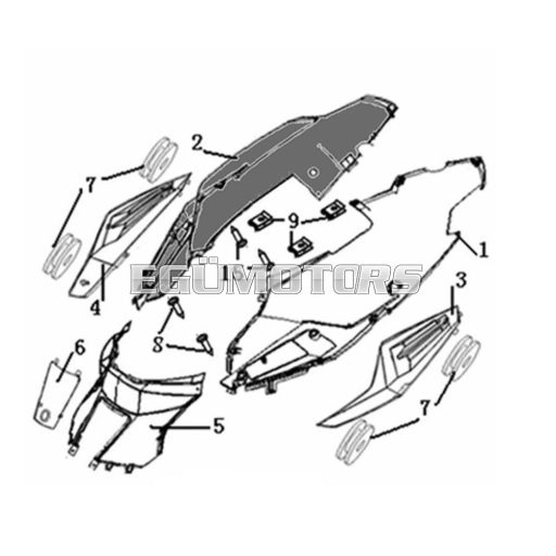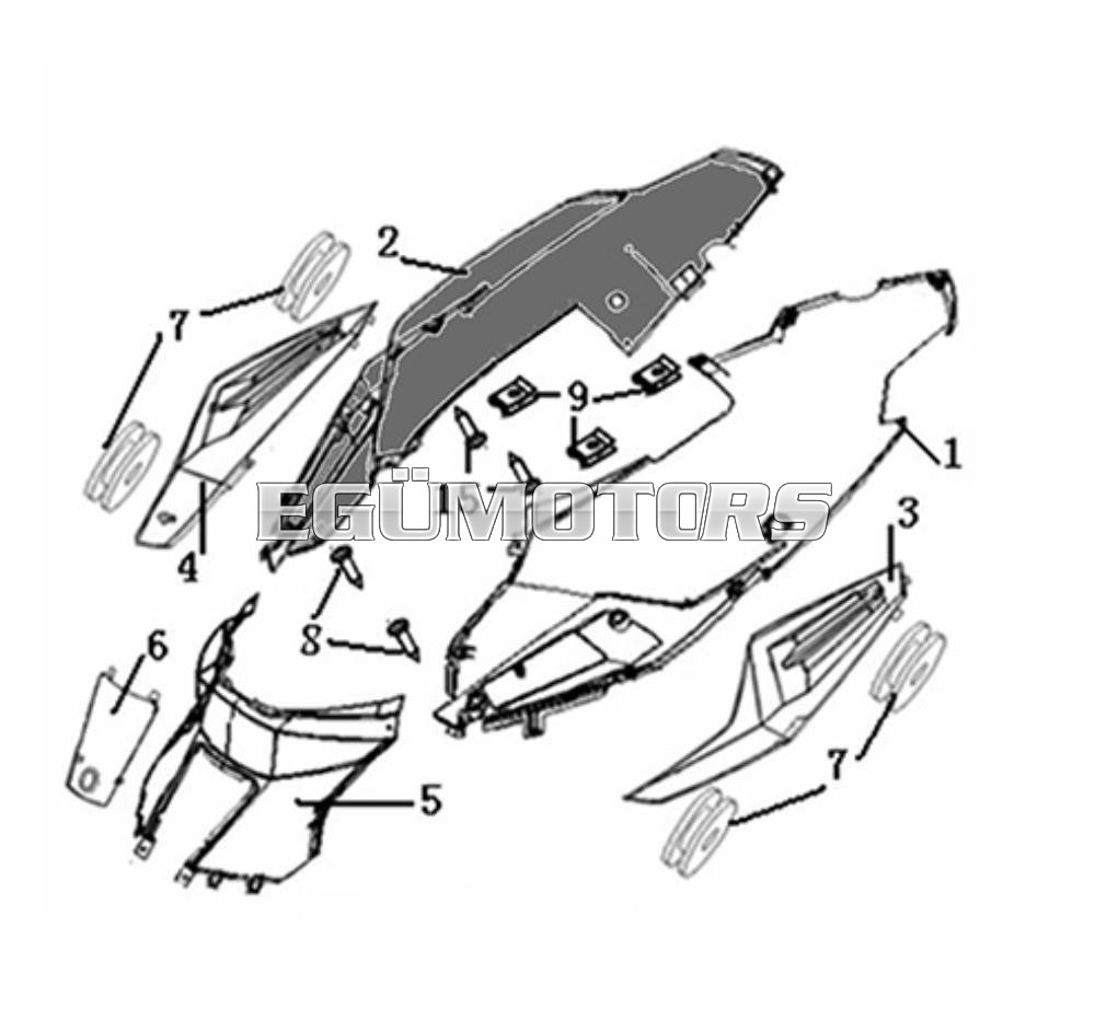 Keeway alkatrész, hátsó idom, jobb oldal.
