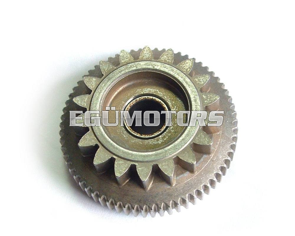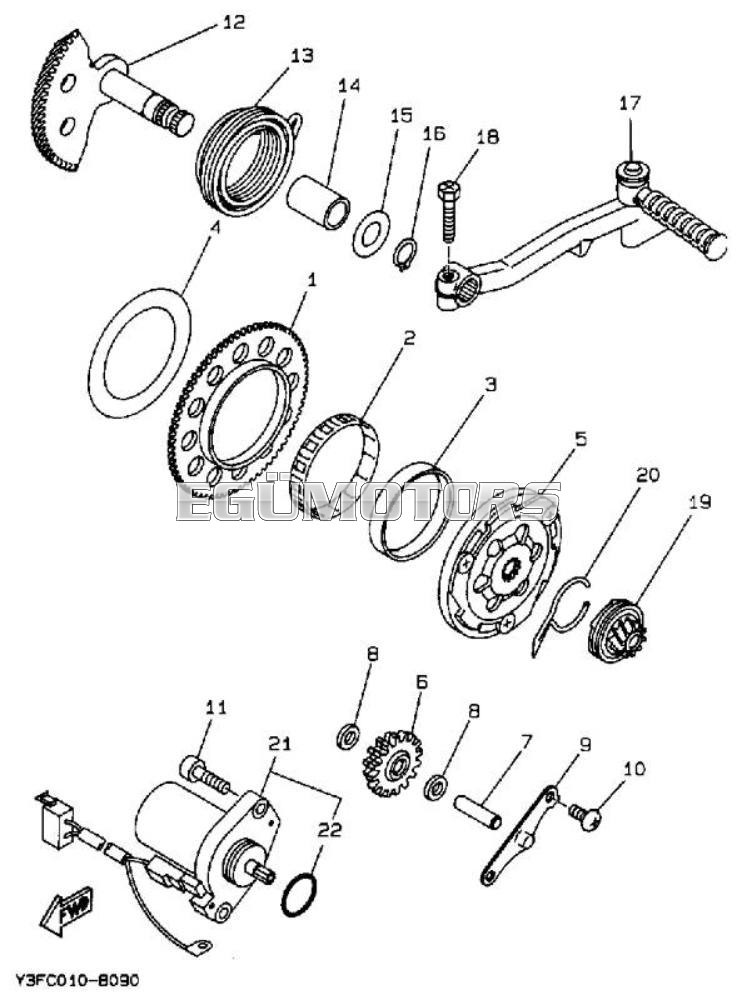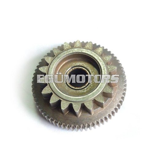 Eredeti, Yamaha gyártmányú közlőfogaskerék az önindítóhoz, CY-CA-MY-MA blokkos robogókba való alkatrész. 6-os számú alkatrész a további képeknél látható robbantott ábrán.