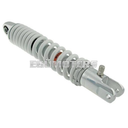 Magas minőségű Motoforce Racing gyártmányú hátsó, olajos rugóstag. 320mm, fokozat nélkül állítható a rugó előfeszítés, a szürkére eloxált, körmös anyával. CNC technológiával munkálták meg a csatlakozó végeket.