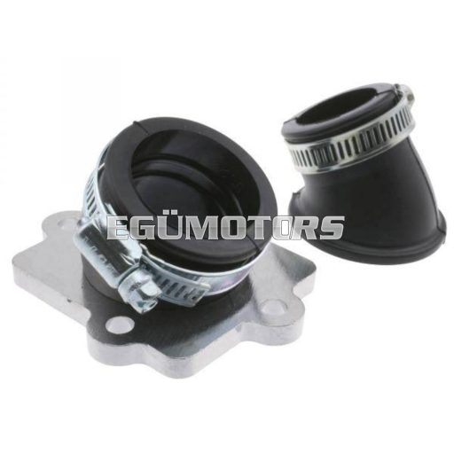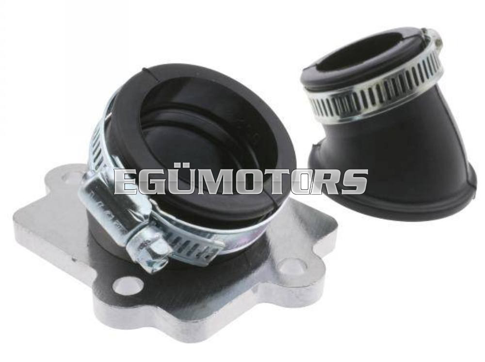 Ez a kétrészes szívócsonk megfelelõ megoldást jelenthet, ha nem áll rendelkezésre elegendő hely a nagyobb porlasztónak, mivel két tagja többféleképpen is összecsatlakoztatható (forgatható gumi rész), így a megfelelő helyzetbe állítható vele a karbi. Nem utolsó sorban az ára is igen kedvező, szemben a nevesebb gyártók egy darabból álló termékeivel. (Malossi short, Kiesler)