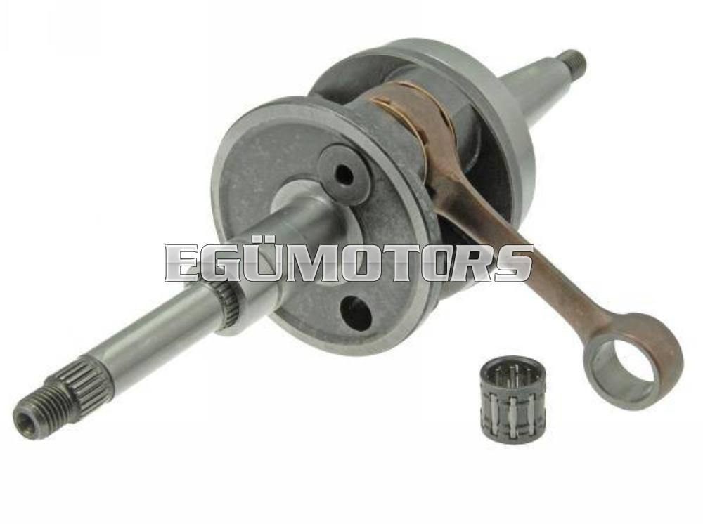 Motoforce gyártmányú, a gyárival megegyező minőségű főtengely. A hajtókar alsó és felső csapszegénél is olajfurattal rendelkezik. Az alkatrész tartozéka a gyári minőségű tűgörgős kosár is.