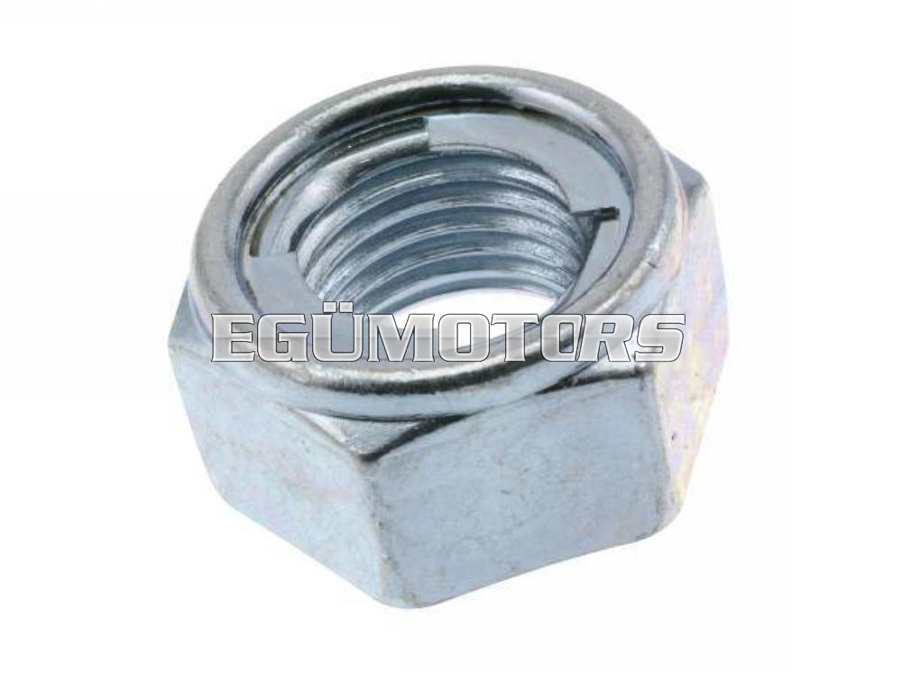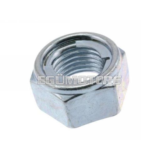 Önzáró keréktengely anya, minden Minarelli blokkos robogóhoz. Horganyzott acél.