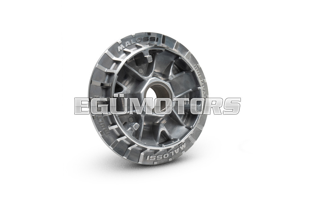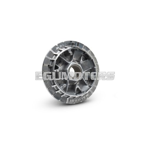 Half-pulley made of aluminium alloy with silicon content, machined on very high precision CNC machines and diamond-finished, with recalculated profiling of the roller sliding guides.
