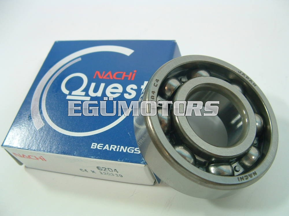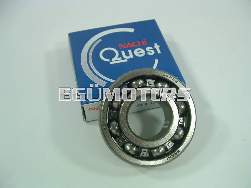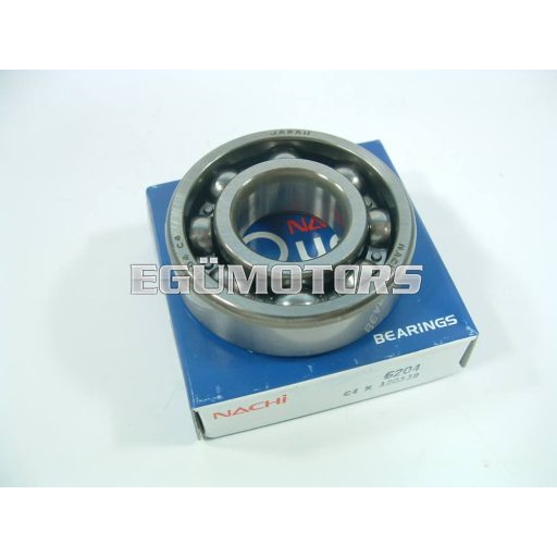 Japán Nachi gyártmányú egysoros, mélyhornyú, fémkosaras golyóscsapágy speciális illesztési hézaggal (C4). Minősége a KOYO-val azonos.