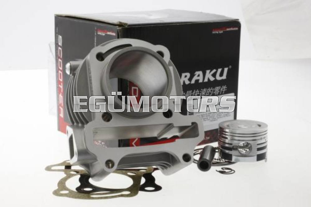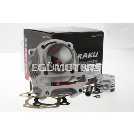 A Naraku új V2-es szériából most már a 80ccm-es hengerszettet is kínálunk nektek, ami úgy mint a 72ccm-es hengerszett nem igényel új hengerfejet, így a gyári hengerfej által megengedett legnagyobb furatot teljesen kiaknázza. A krómos gyűrű felülre, a fekete alulra való.