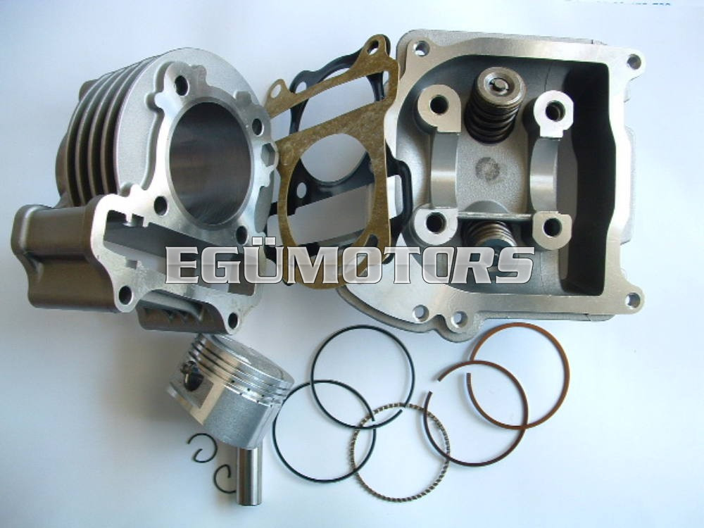 A henger beszerelése után jóval nagyobb erőt és nyomatékot kapunk. A szett tartalmaz egy optimalizált hengerfejet is, melynek maximálisra méretezték a szívó és kipufogó szelep fészkét. Természetesen a dugattyút is módosították. A szettben megtalálható minden, ami a henger felszereléséhez kell.