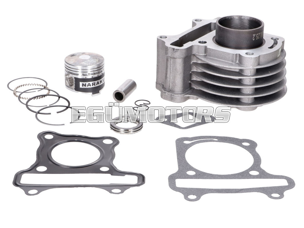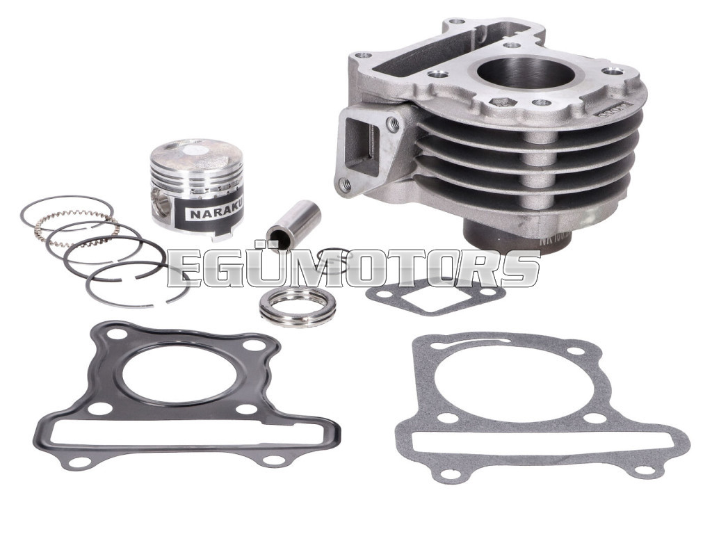 NARAKU 50cm3-es, négyütemű hengerszett, 139QMB/QMA a motorszámú kínai robogókhoz és Kymco Agilityhez. Ha tönkrement az eredeti hengered, ez egy tökéletes alternatíva a javításhoz. A méretei teljesen azonosak minden Kínában gyártott négyütemű robogóval/hengerrel. Felszerelése nem igényel átalakítást.