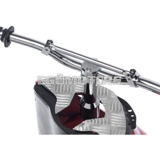 Az ODF egy kizárólag robogókra fejlesztett kormánytakaró lemezzel szeretné megörvendeztetni a robogó tuning szerelmeseit. Nemcsak hogy kiváló optikai kiegészítő ez a csillogó lemezből specifikusan a Te robogódhoz készített alkatrész, de tökéletes megoldás a kormány körül húzódó vezetékek (fékcső, elektromos kábelek, bowdenek) begyűrődése, esetleges rongálódása ellen is.