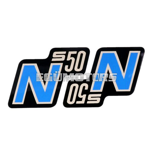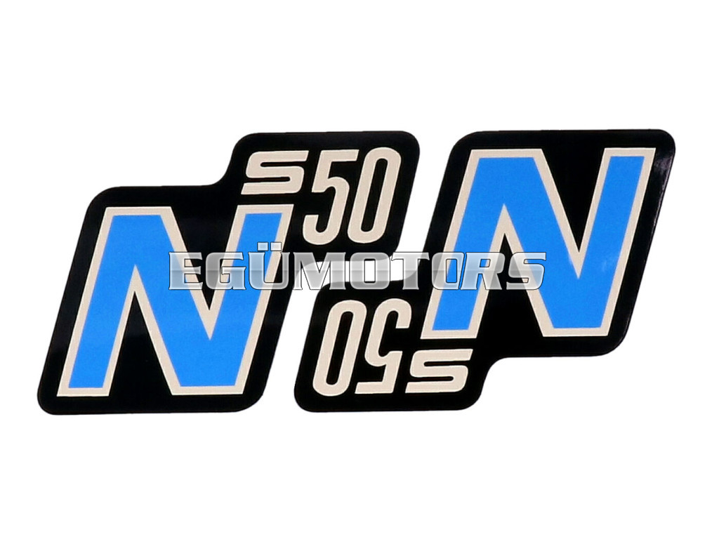 Logo matrica / embléma jelvény S50 N fekete-világoskék színben.