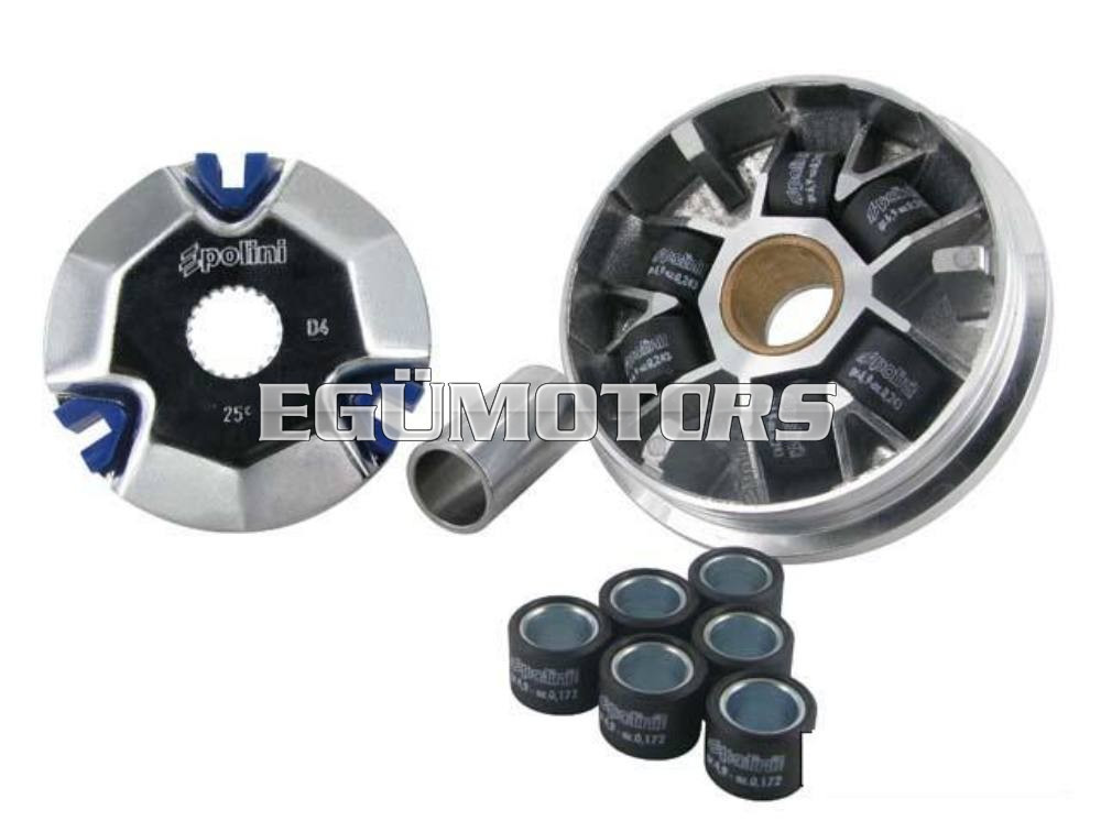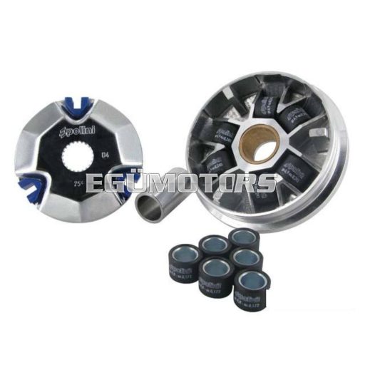 Polini Hihg-Speed variátor, kétkülömböző súlyú görgővel a precízebb beállítás végett.
