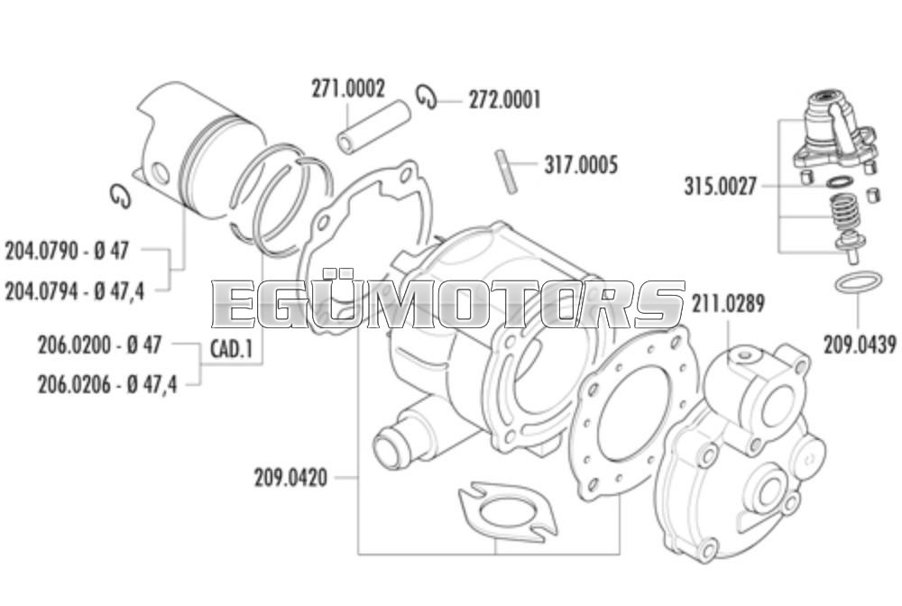 A Malossi elektronikus megoldása helyett, egy egyszerű mechanikus megoldással szabályozható a benzin-levegő keverék mennyisége. A befecskendező szivattyúnál cserélhetőek a különböző vastagságú alátétek.
