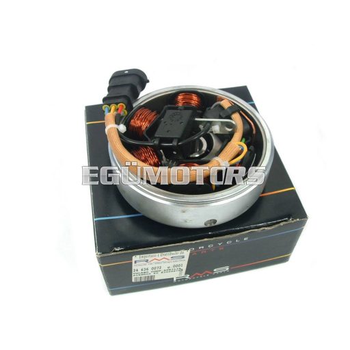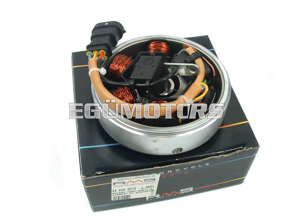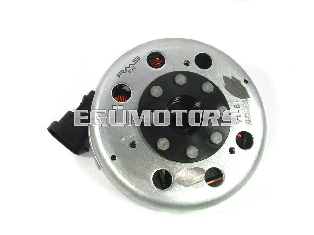 RMS Piaggio olasz alaplap, lendkerékkel. 1999 utáni, katalizátoros Piaggio/Gilera modellekhez. Purejet modellekhez nem használható!
