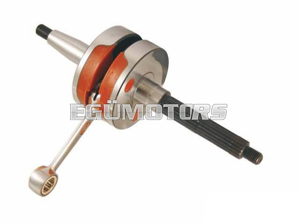 RMS erősített Racing főtengely. Műanyag térkitöltő elemei miatt magas elősűrítés érhető el vele, emiatt kifejezetten tuningolt motorokhoz ajánlott. Polírozott hajtókarral és ezüstözött tűgörgős kosárral. Polírozott hajtókarral és ezüstözött tűgörgős kosárral.