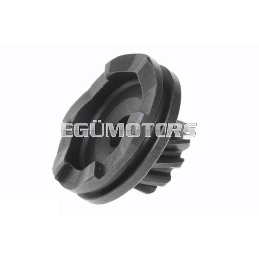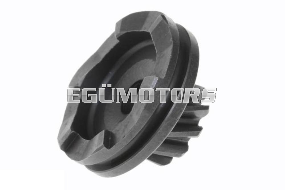 Olasz RMS gyártmányú robogó alkatrész. Variátor deknibe való berugóracsni. Az alkatrész a berugókar fogas ívén keresztül kapja a hajtást, így kapcsolódik a főtengely végén lévő fogas alátéthez (ellenkerék).