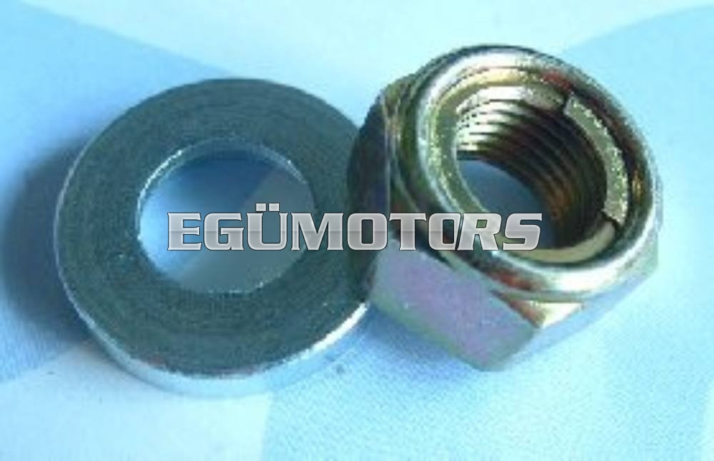 RMS robogó alkatrész, hátsókerék tengely anya M14x1.5mm méretben, 22-es kulcsnyílással + 5mm vastag alátét.