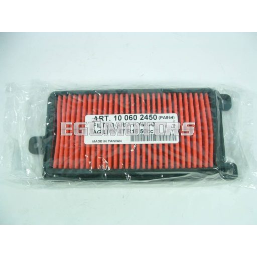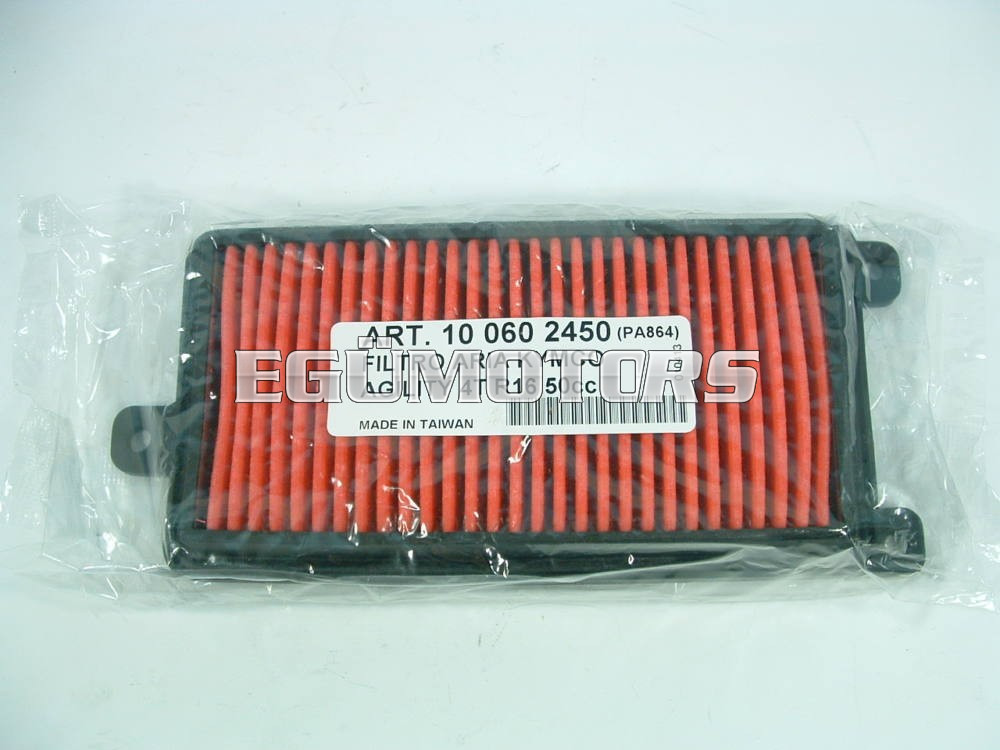 Az olasz RMS által gyártott papír légszűrő betét műanyagházban, Kymco Agility City 50-hez és sok más típushoz. Ha a piros rész erősen szennyezett akkor cserére szorul. 2000-3000 KM-enként érdemes megnézni az állapotát. A szűrés teljesítményén javít, ha a műanyagházat vékonyan kifújjuk légszűrő olajjal.
