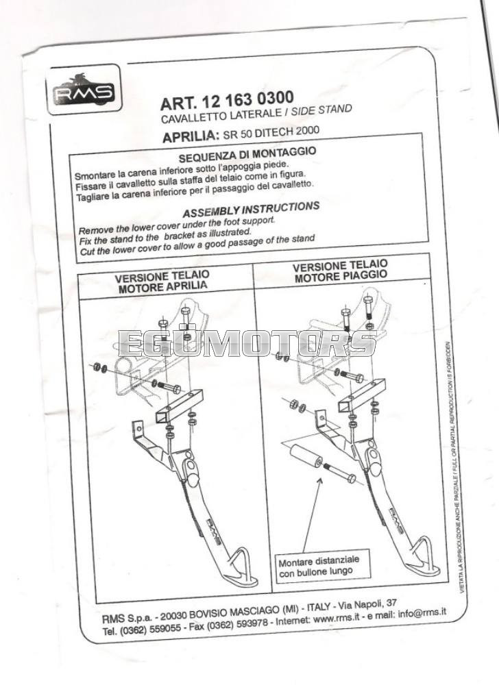 Olasz RMS gyártmányú, vasból készült, feketére festett oldalsztender. A konzol horganyzott felületet kapott, így jobban ellenáll az időjárásnak és a párának. A csomag tartalmaz a felszereléshez szükséges minden darabot.