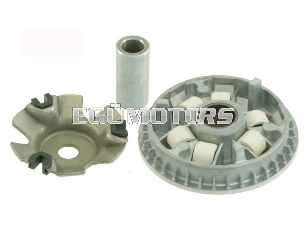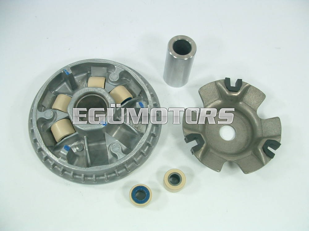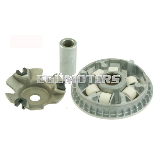 A szett tartalma: variátor dob (115 mm), 6db 18x14-es 13g-os görgő, nyomólap, 3db csúszka, variátor hüvely (15x24x51.5mm).