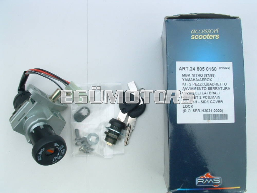 RMS gyártmányú 2db-os zárszett, Yamaha Aerox / MBK Nitro típusú robogókhoz.