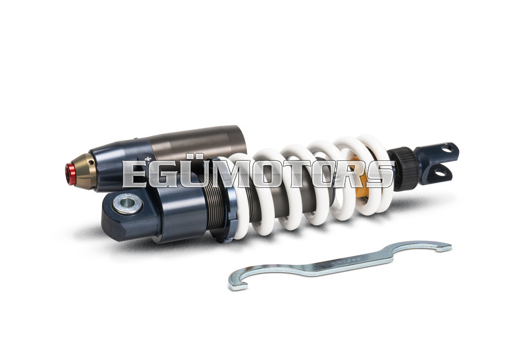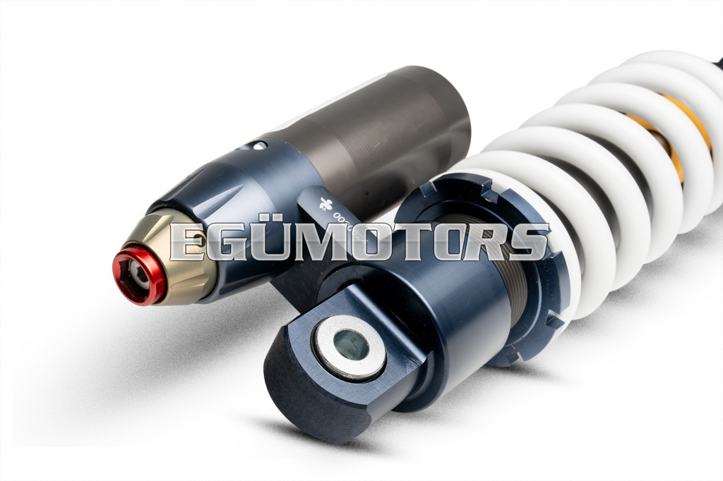 This superlative, compact and very light shock absorber, completely manufactured in ergal, with the exception of stem and spring, was born out of the cooperation between Malossi designers and Paioli.