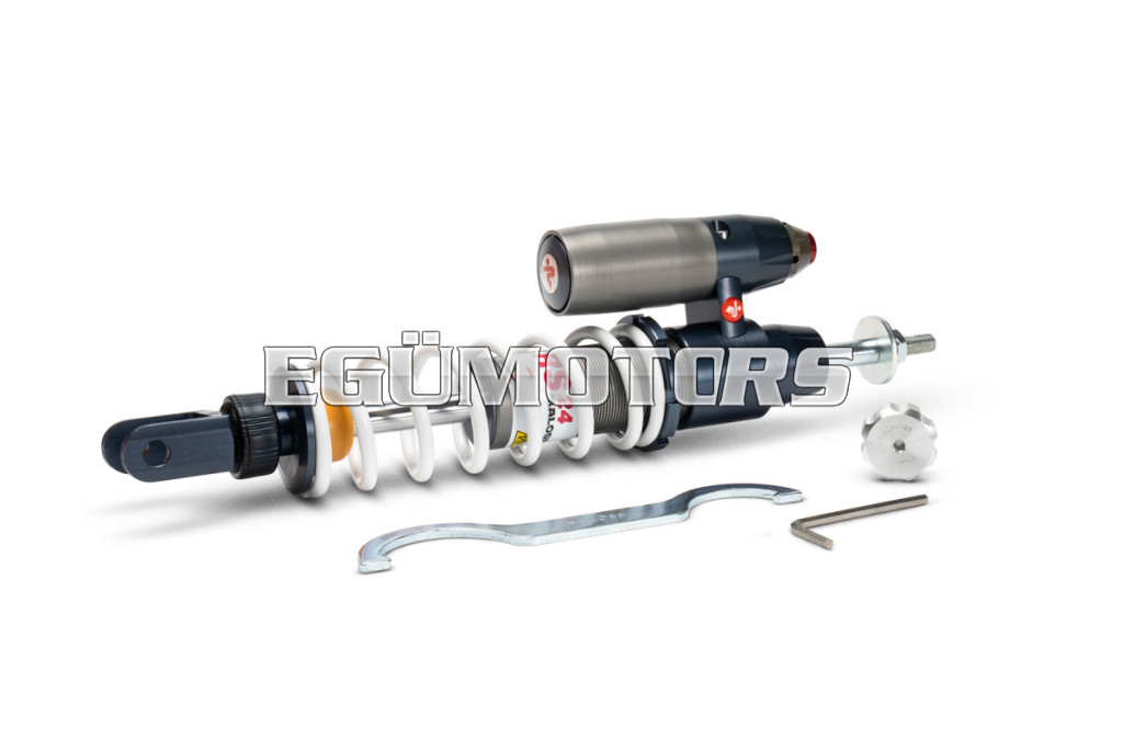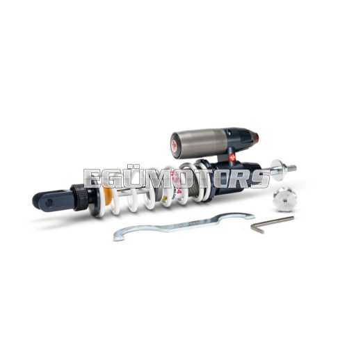 This superlative, compact and very light shock absorber, completely manufactured in ergal, with the exception of stem and spring, was born out of the cooperation between Malossi designers and Paioli.