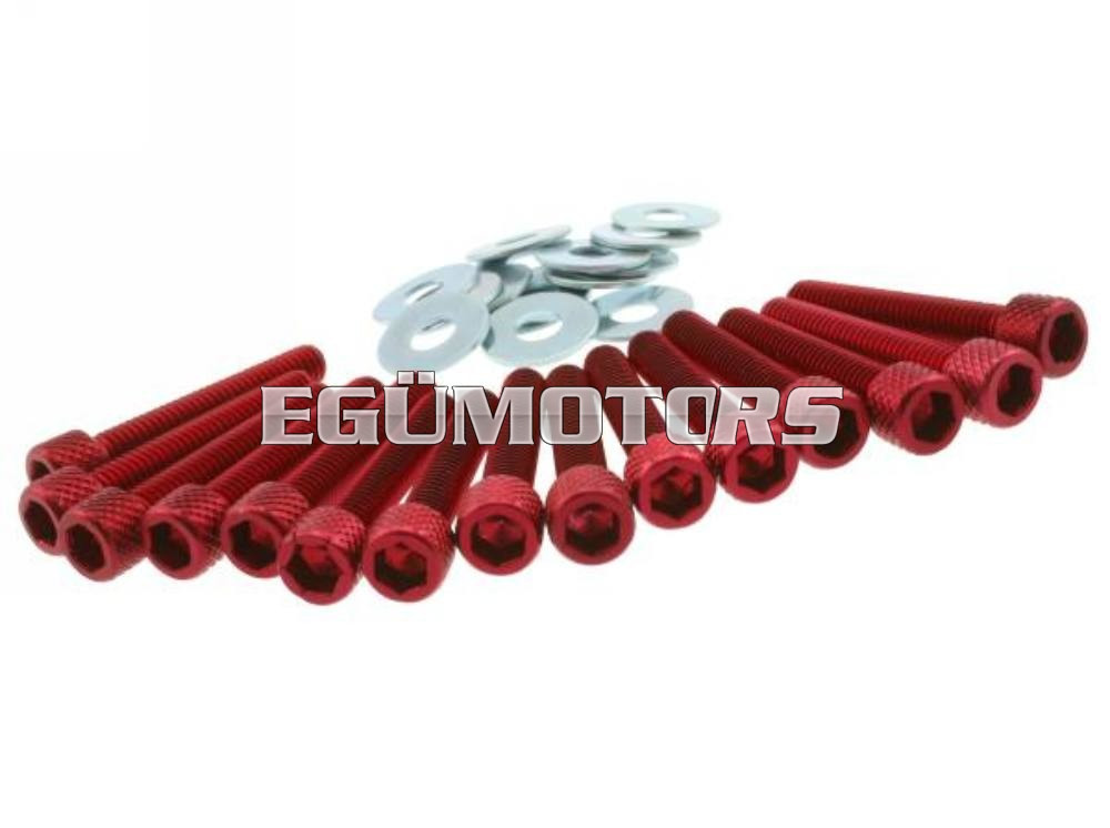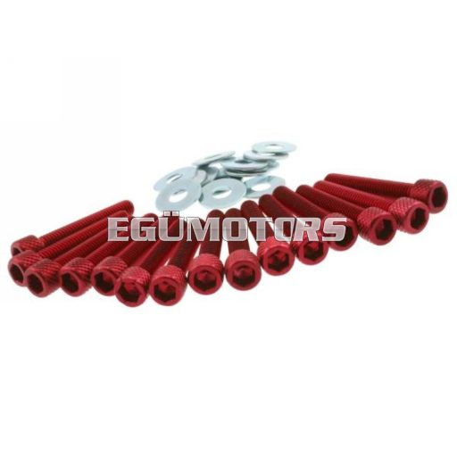 Piros dekni csavarszett, Minarelli motoros robogók variátor fedeléhez. A csavarok anodizált alumíniumból készültek,