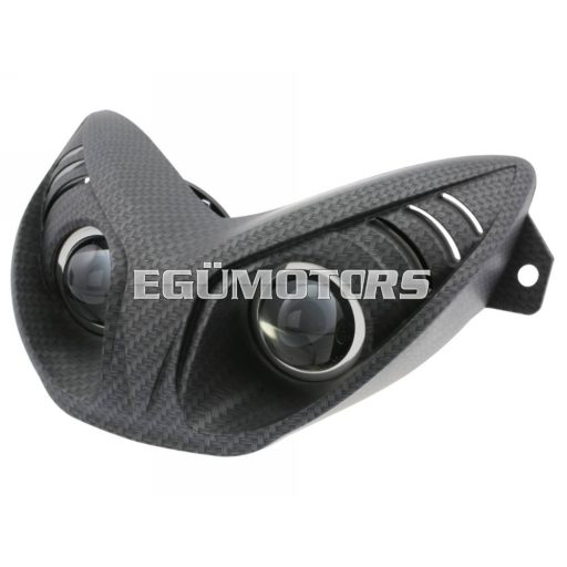 Karbon színben, 2 db halogén izzóval. Egyenként 55 Watt teljesítménnyel azaz 110W-tal! Az izzó H3-as típus, könnyen beszerezhető, cserélhető ha kiég.